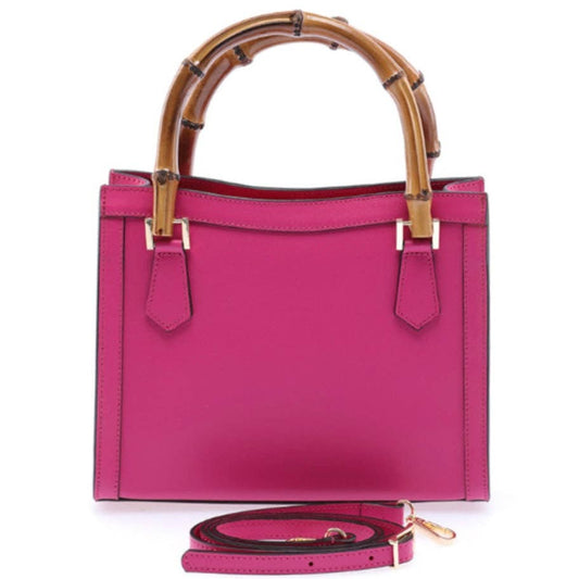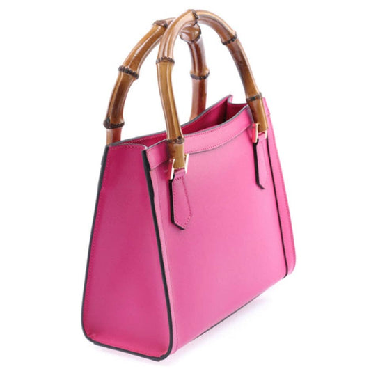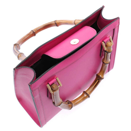 Genuine Leather Fuchsia Pink handbag / shoulder bag with real bamboo handle, crafted in Italy