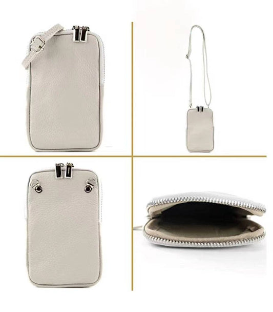 Genuine Leather Rose Gold phone bag, crafted in Italy