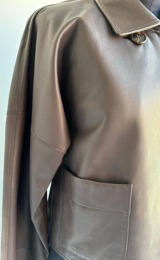 Our outerwear is classic wardrobe essential. Our range is timeless, designed in supple leathers and suedes. These pieces can carry you through the seasons and for years to come. They might be a big investment piece, but can last a lifetime.They are natures way of upcycling using the by-product from the food chain. The global meat industry produces more hides than are required for leather and by repurposing the hides in my collection it stops them going into landfill. Nothing that we use has been killed just for their hide. It is a by-product and repurposed, all pieces are biodegradable, breathable and nothing is made from petrochemicals which makes fake polyurethane plastic leather. Our genuine leather timeless pieces stay in style from year to year and are sustainable. They develop a luster or patina over time, aging beautifully. Each piece can be handed down through the generations. Only a small outerwear collection is produced each season, don't miss out on a timeless investment piece.