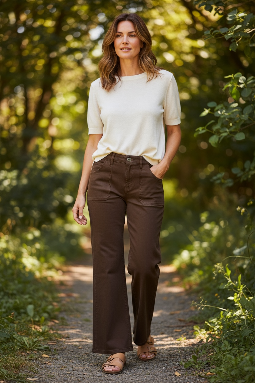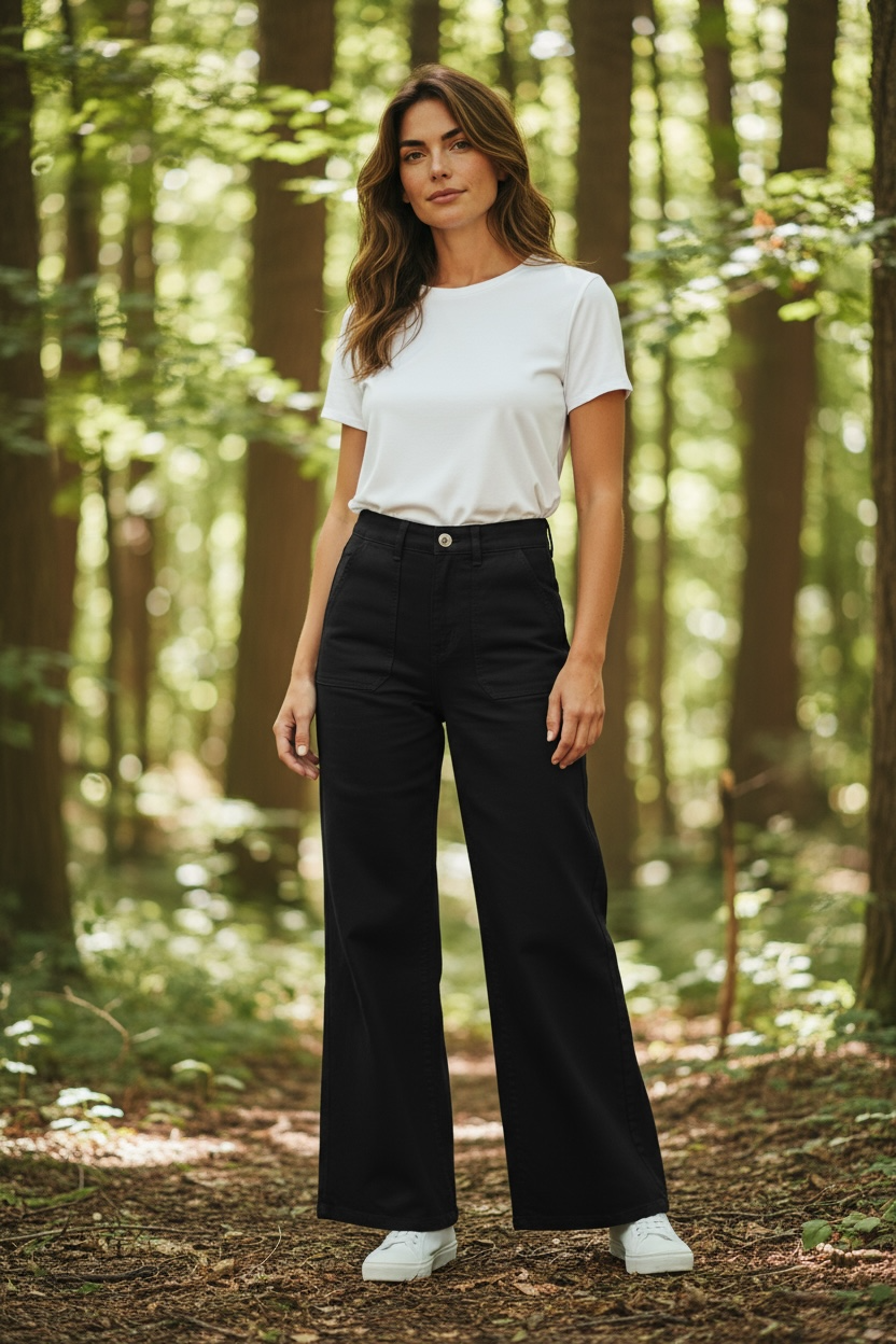 Super flattering, high waisted, wide leg, patch pocket jeans with a soft stretchy denim.